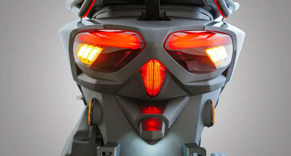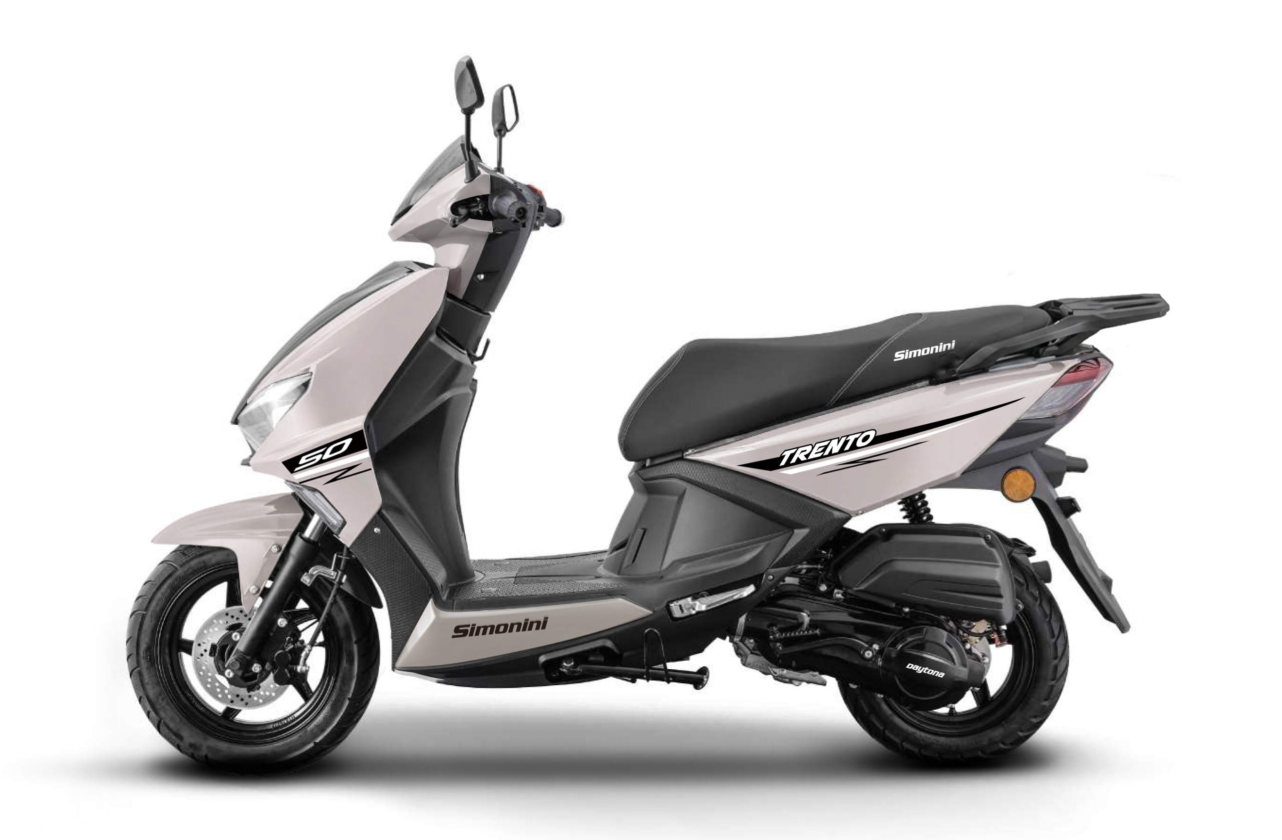 Η πίσω διάταξη φωτισμού του TRENTO 50 έχει έντονο, χαρακτηριστικό σχεδιασμό. Τα δύο πλαϊνά φωτιστικά ενσωματώνουν στις άκρες τους τα φλας, ενώ το κεντρικό κάθετο στοιχείο ολοκληρώνει το σύνολο, κάνοντας το Simonini άμεσα αναγνωρίσιμο.