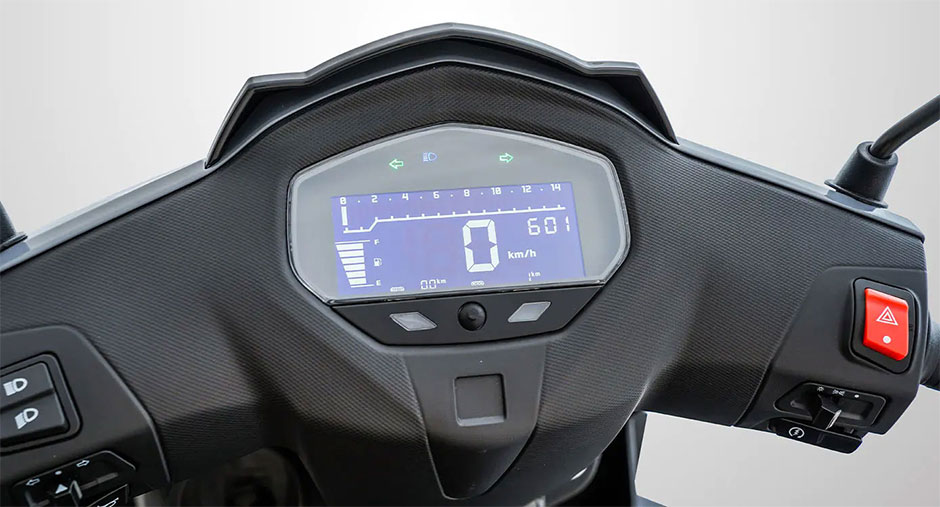 Ψηφιακή LCD οθόνη με καθαρή απεικόνιση, ώστε οι βασικές ενδείξεις (ταχύτητα, στάθμη καυσίμου, στροφόμετρο, ρολόι και προειδοποιητικές λυχνίες) να διαβάζονται εύκολα με μια ματιά.