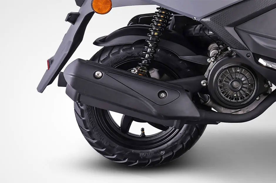 Παρά το χαμηλό του βάρος (μόλις 85 kg), το TRENTO 50 διαθέτει διπλά πίσω αμορτισέρ, που προσφέρουν πιο σταθερή κύλιση και καλύτερη απόσβεση στις ανωμαλίες της πόλης.